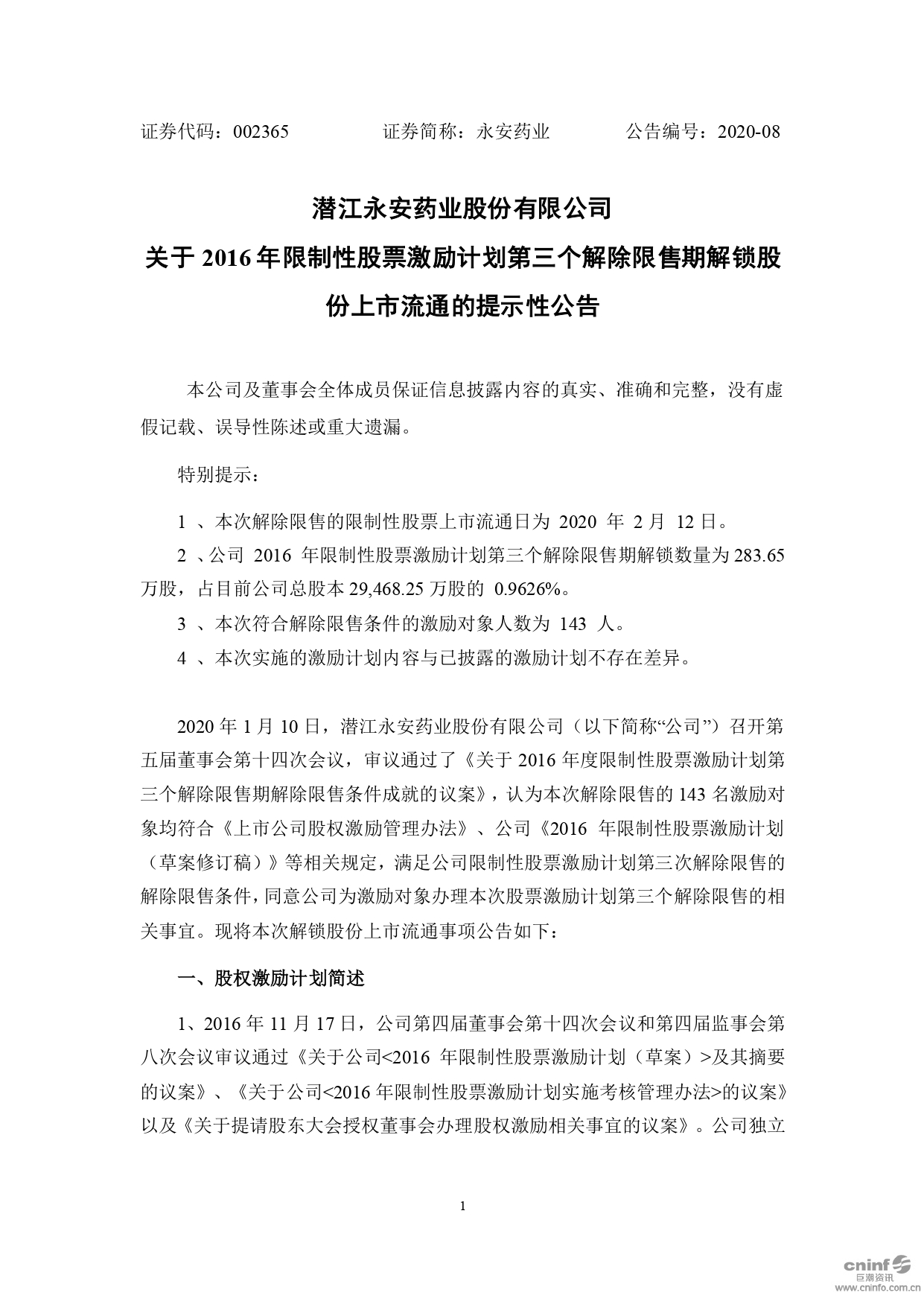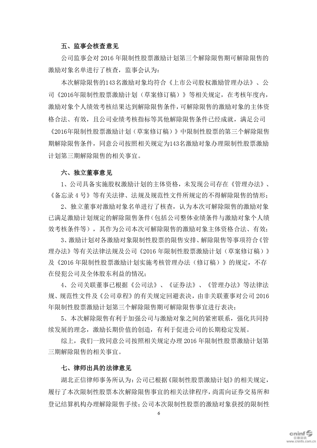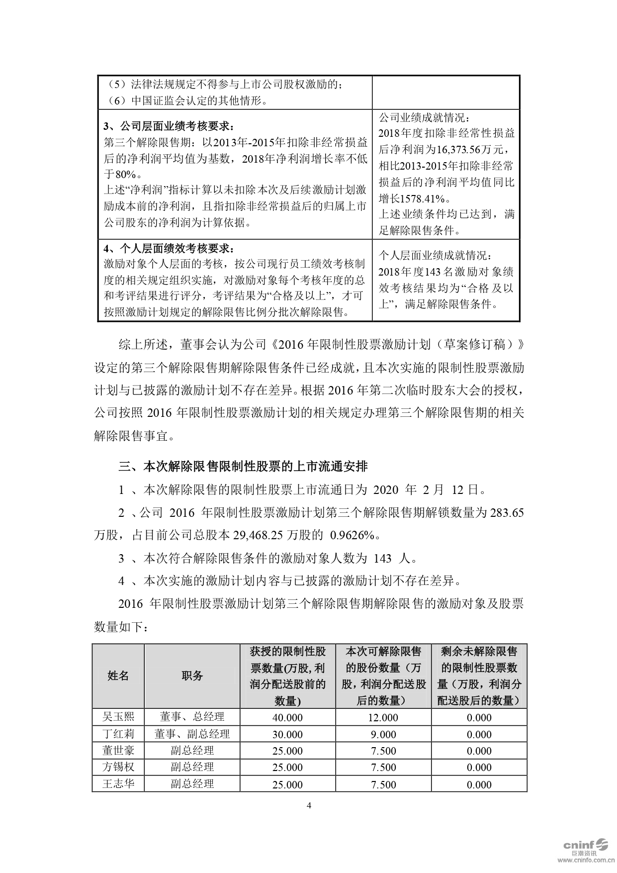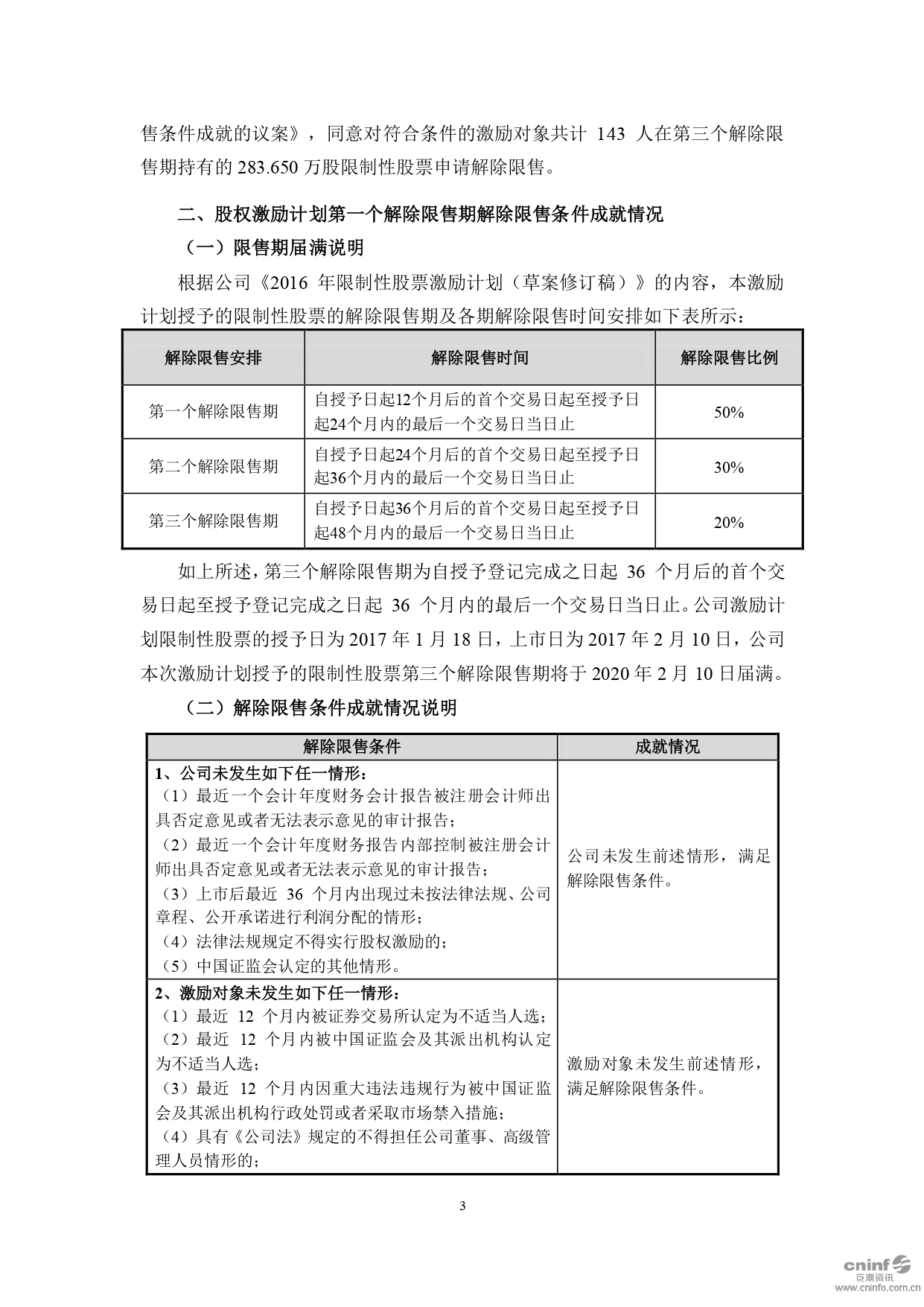 關(guān)于2016年限制性股票激勵(lì)計(jì)劃第三個(gè)解除限售期解鎖股份上市流通的提示性公告