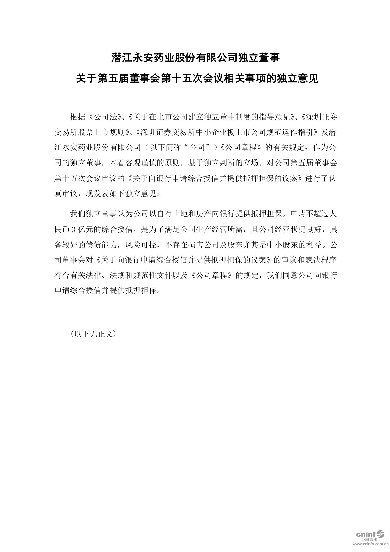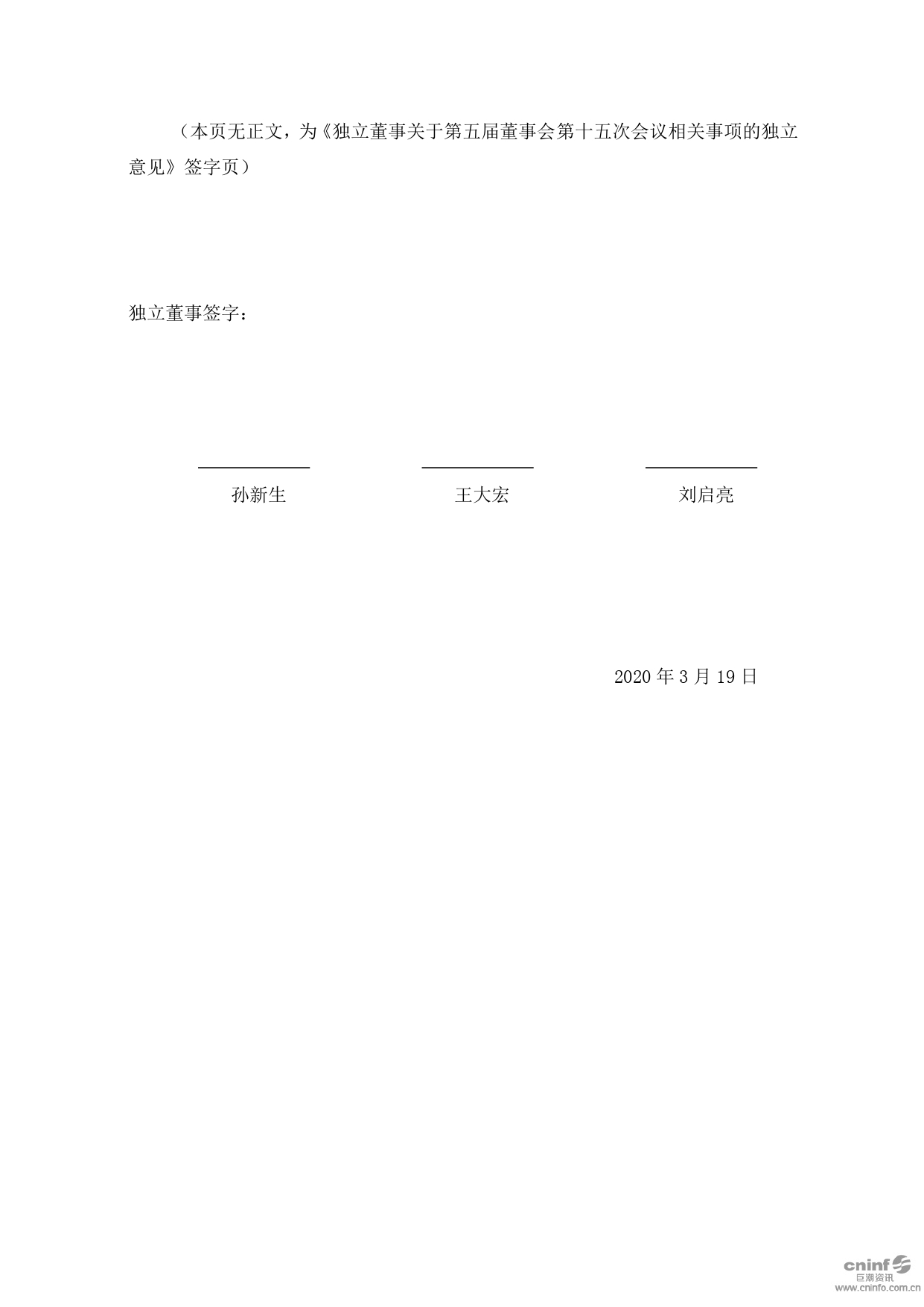 獨(dú)立董事關(guān)于第五屆董事會(huì)第十五次會(huì)議相關(guān)事項(xiàng)的獨(dú)立意見