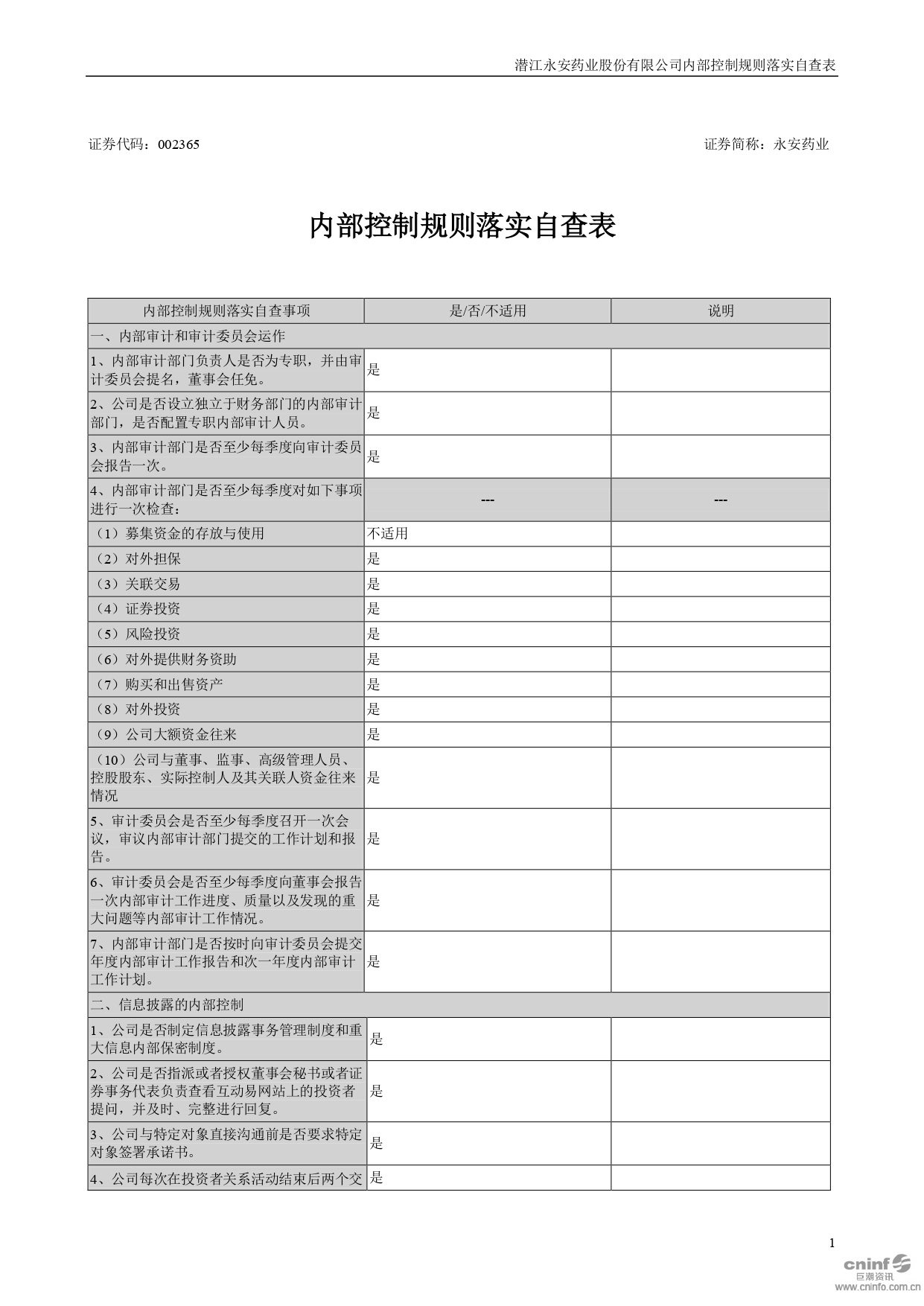 內(nèi)部控制規(guī)則落實(shí)自查表