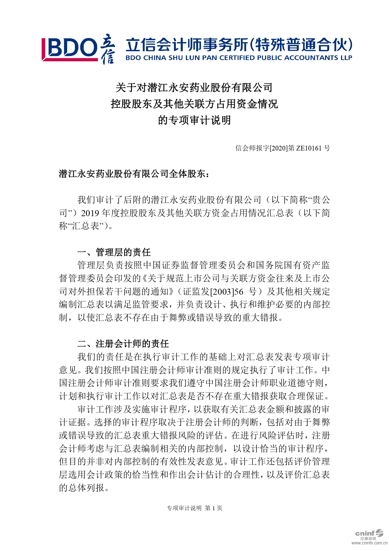 關(guān)于對公司控股股東及其他關(guān)聯(lián)方占用資金情況的專項審計說明